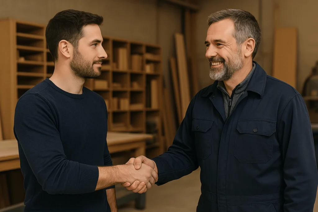 La relation humaine, un engagement pour vous, un gage de qualité et de respect de vos demandes. Nous avons une équipe de spécialistes dans des matériaux variés (bois, résine minérale, feuille de pierre, cuir, plaquage).